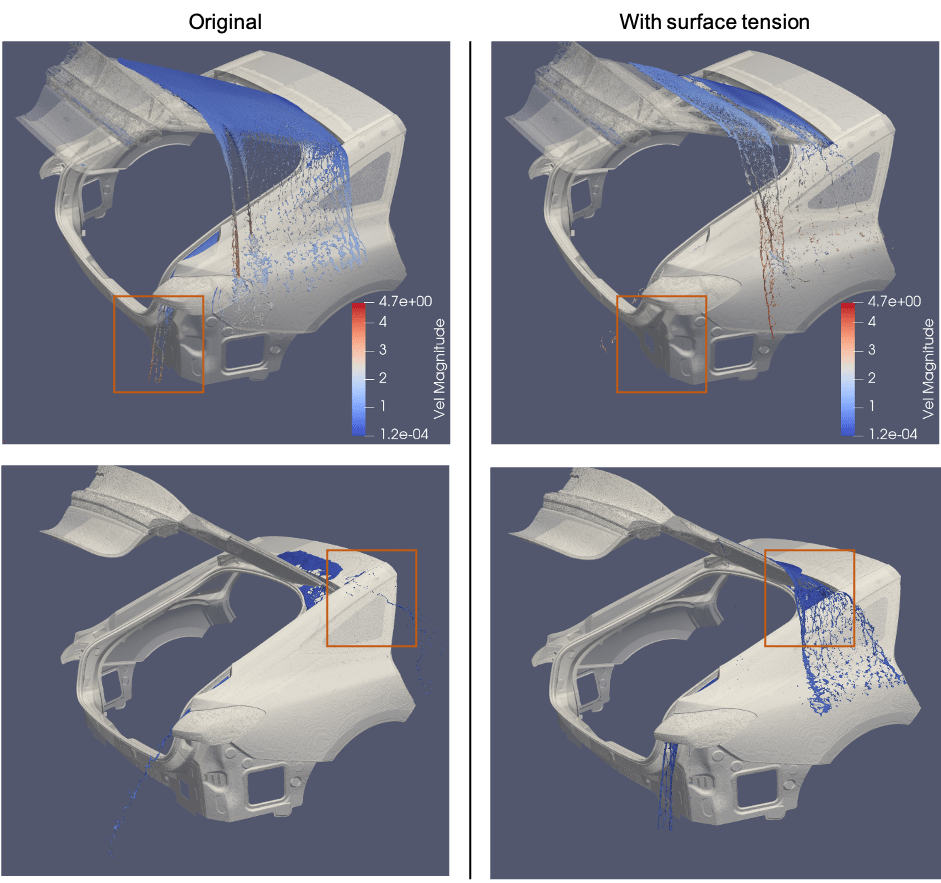 This can help the design department to avoid the adverse experience caused by water management failure at the early stage of design, typical scenarios such as trunk raising after rainfall, causing rainwater infiltration into the vehicle and affecting the customer’s experience.